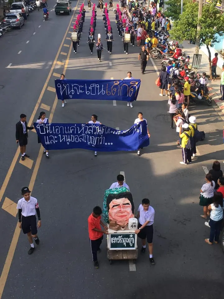 ผมเลยจะขอทำต่อปี 4 ปี ,เรารักลุงตู๋ เป็นต้น โดยขบวนพาเหรดดังกล่าว ได้รับการแชร์และแสดงความคิดเห็น พร้อมทั้งชื่นชมว่า เด็กไทยตื่นตัวทางการเมือง