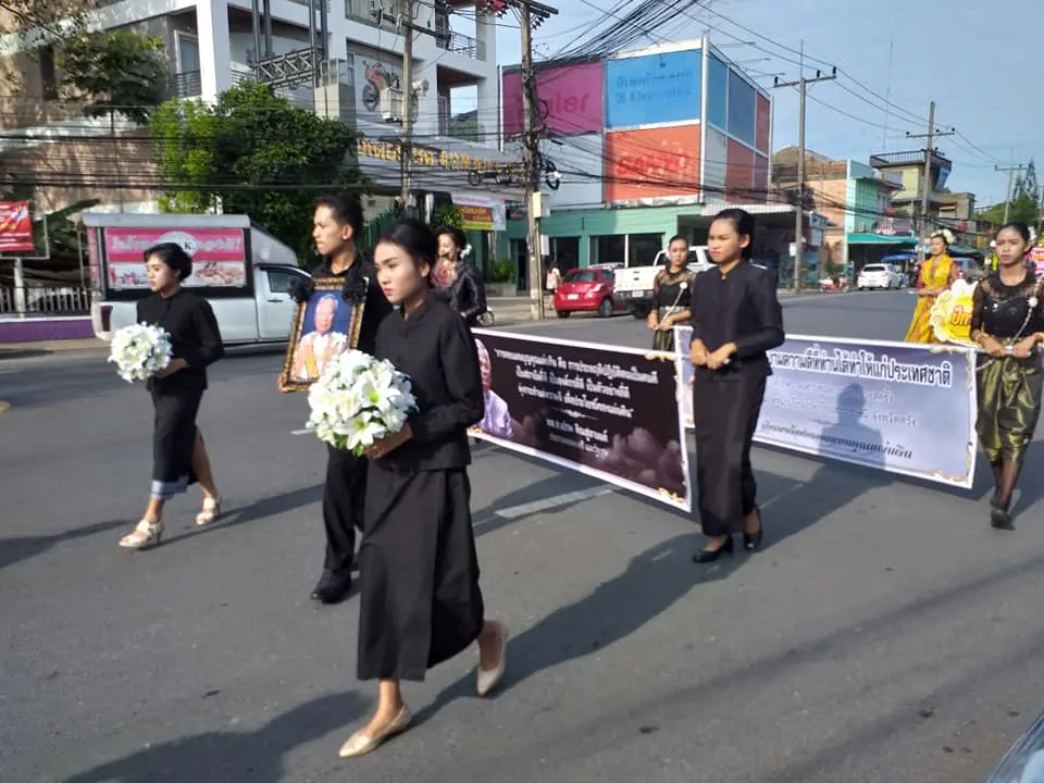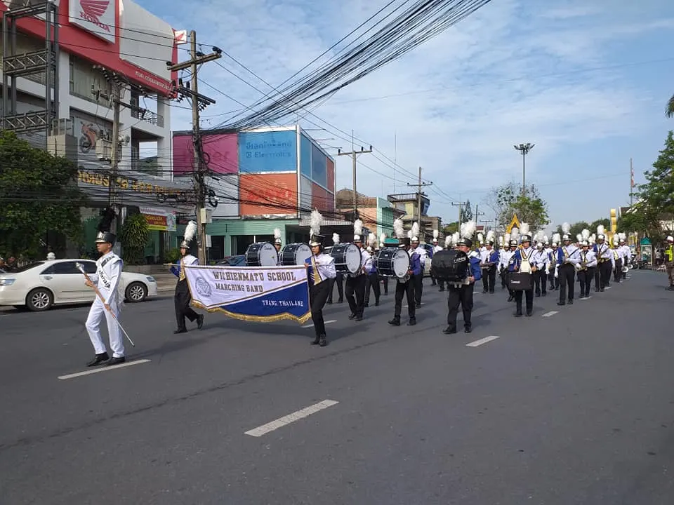 โดยล่าสุดพบว่า มีการแชร์ภาพ ขบวนพาเหรดของโรงเรียนสภาราชินีตรัง ซึ่งพบว่า มีการถือป้ายผ้าในขบวนพาเหรด