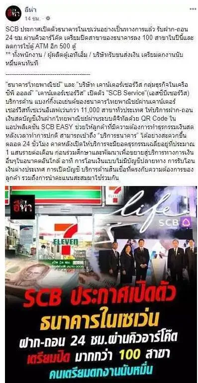 SCB ปิดธนาคาร 100 สาขาเตรียมเปิดใน 7-11 ฝาก ถอน 24 ชั่วโมง