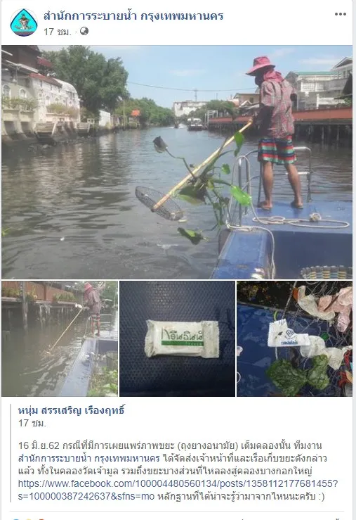 ต่อมา ด้าน “สำนักการระบายน้ำ กรุงเทพมหานคร”แจ้งว่า ส่งเจ้าหน้าที่ลงพื้นที่เข้าไปทำความสะอาดในคลองแล้ว โดยได้แชร์โพสต์จากเฟซบุ๊ก “หนุ่ม สรรเสริญ เรืองฤทธิ์” โดยระบุว่า “กรณีที่มีการเผยแพร่ภาพขยะ (ถุงยางอนามัย) เต็มคลองนั้น ทีมงานสำนักการระบายน้ำ กรุงเทพมหานคร ได้จัดส่งเจ้าหน้าที่และเรือเก็บขยะดังกล่าวแล้ว ทั้งในคลองวัดเจ้ามูล รวมถึงขยะบางส่วนที่ไหลลงสู่คลองบางกอกใหญ่”