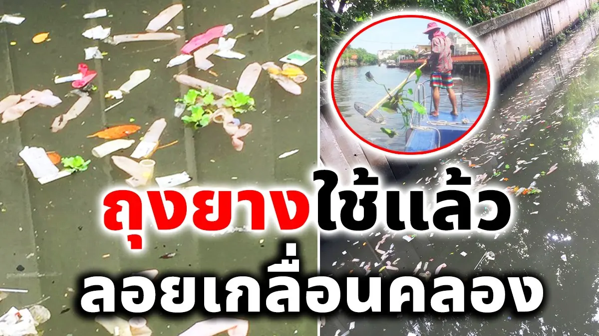 ทิ้งรักลงแม่น้ำ ถุงยๅงลอยเกลื่อน คลองบางกอกใหญ่ สนง.ระบายน้ำส่งจนท.ทำความสะอาด