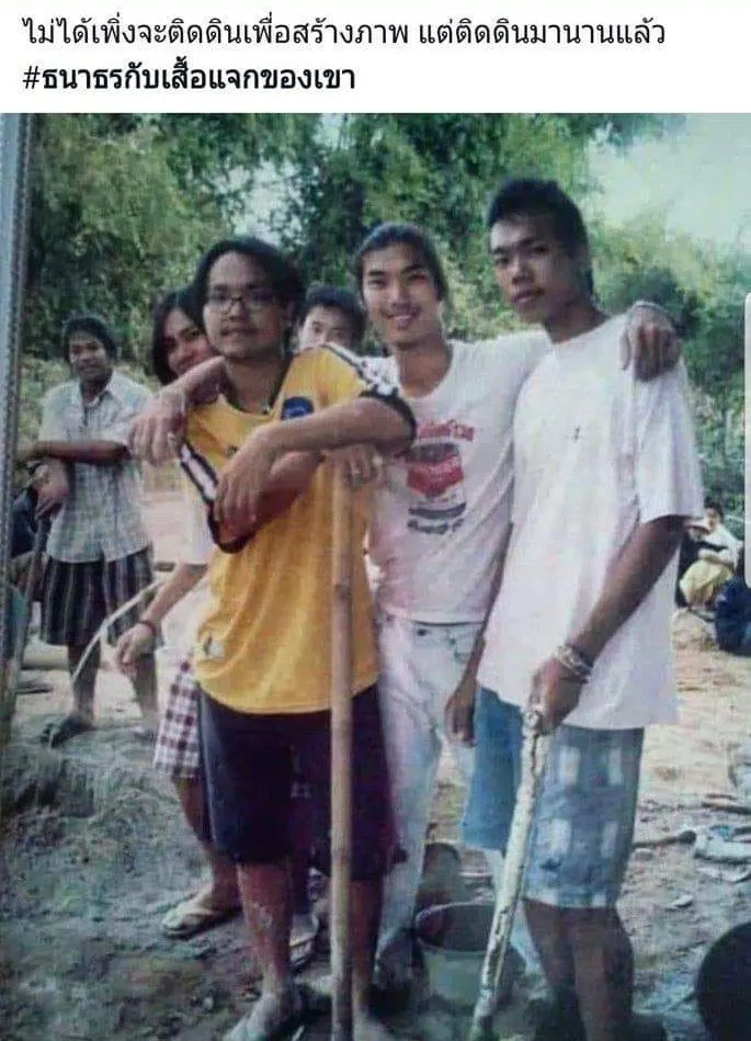ชาวเน็ตแห่แชร์ ภาพธนาธร 'สมัยละอ่อน บอกไม่ได้สร้างภาพติดดิน แต่เป็นมานานแล้ว #ธนาธรกับเสื้อแจกของเขา โดยโพสท์ระบุว่า ไม่ได้เพิ่งจะติดดินเพื่อสร้างภาพ แต่ติดดินมานานแล้ว ธนาธรกับเสื้อแจกของเขา
