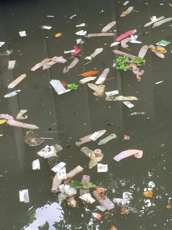 สั่งปรับ 10,000 บาท กรณีพบเศษขยะและถุงยางอนามัยจำนวนมาก ลอยอยู่ในคลองบางกอกใหญ่