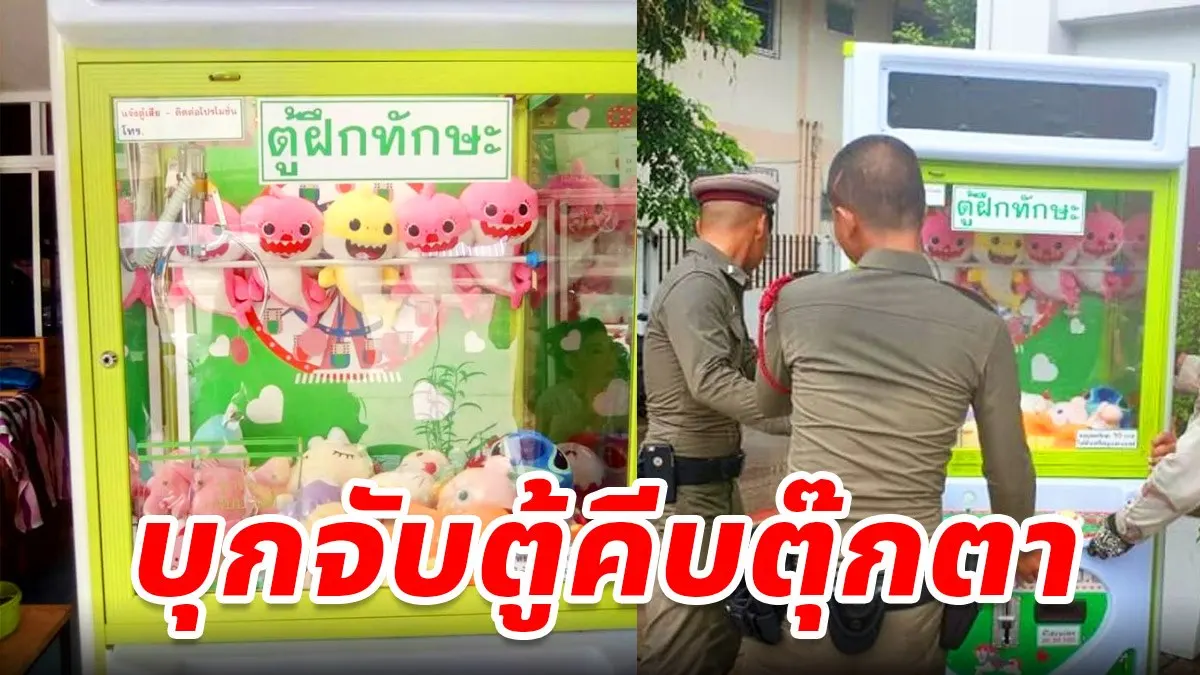 จับตู้คีบตุ๊กตาหยอดเหรียญ หน้าร้านชำ ขึ้นป้าย ตู้ฝึกทักษะ
