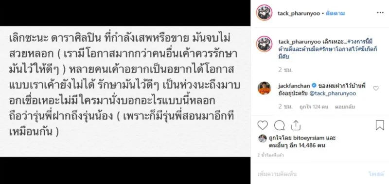 เลิกซะนะ ดาราศิลปิน ที่กำลังเสพ หรือขาย มันจบไม่สวยหรอก (เรามีโอกาสมากกว่าคนอื่นเค้า ควรรักษามันไว้ให้ดี ๆ ) หลายคนเค้าอยากเป็น อยากได้โอกาสแบบเรายังไม่ได้ รักษามันไว้ดี ๆ เป็นห่วงนะถึงมาบอก