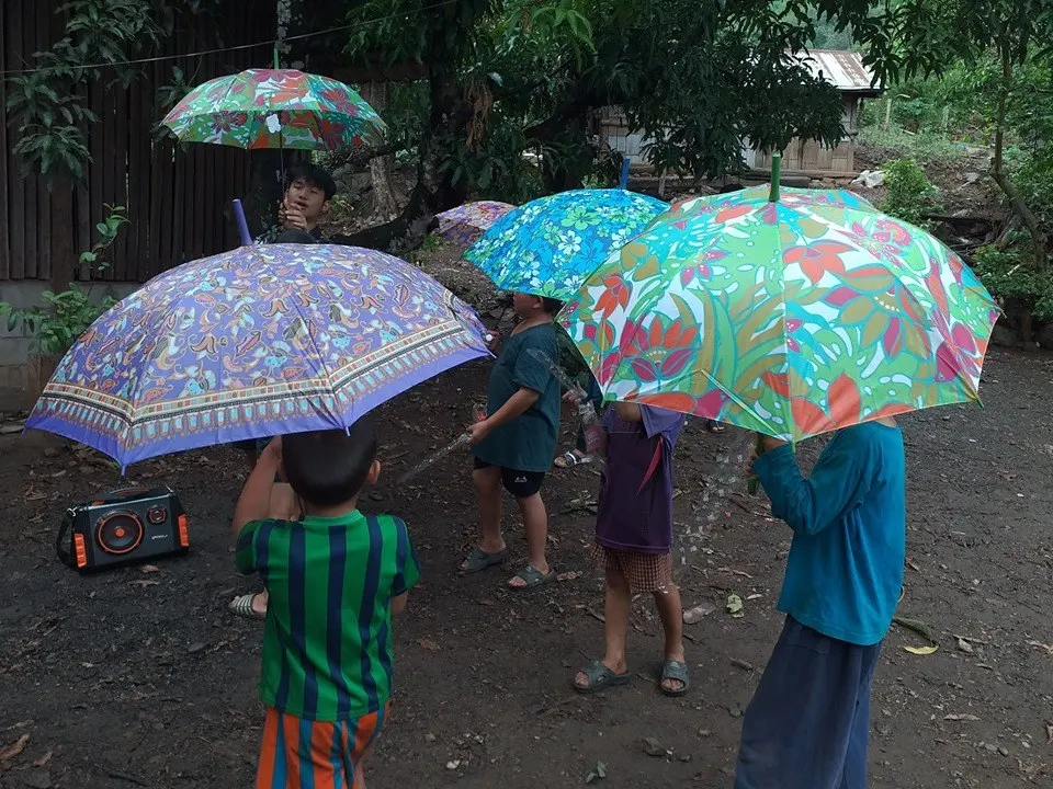 มาช่วยกางร่มให้น้องด้วยกันนะ