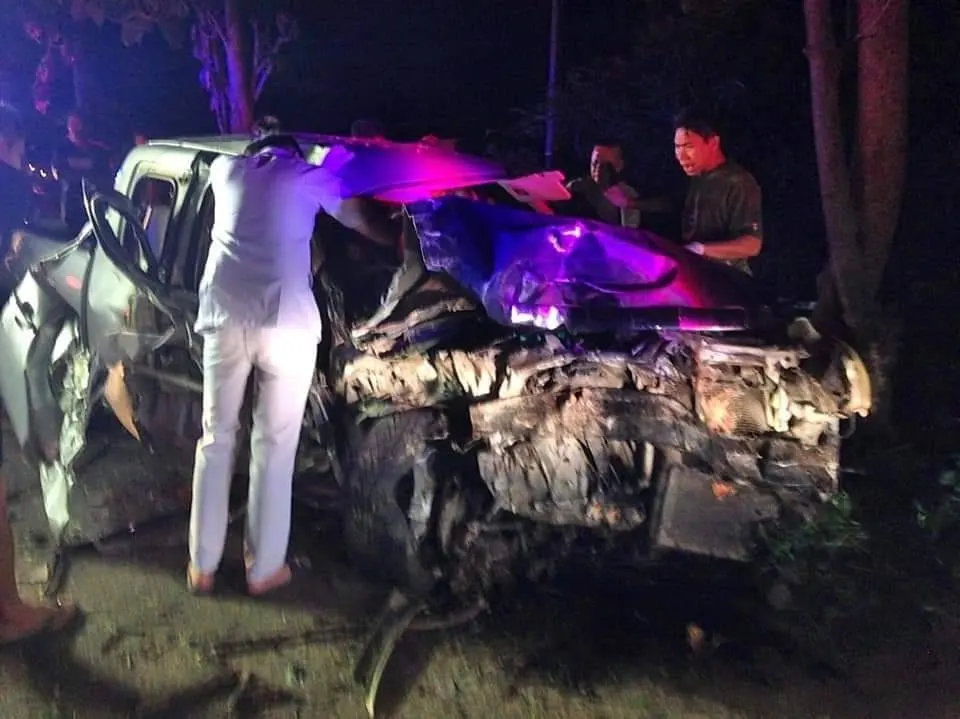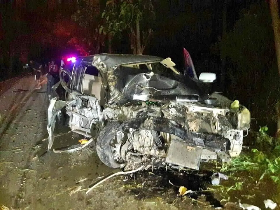 รถยนต์กระบะสองตอนเสียหลักพุ่งชนต้นไม้ข้างทาง รถหน้ายับ-บาดเจ็บ 5 ราย