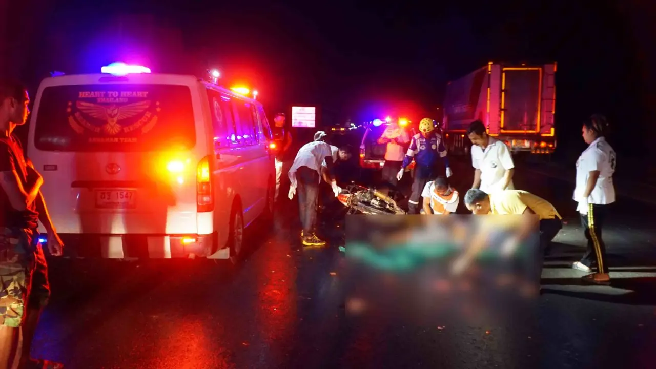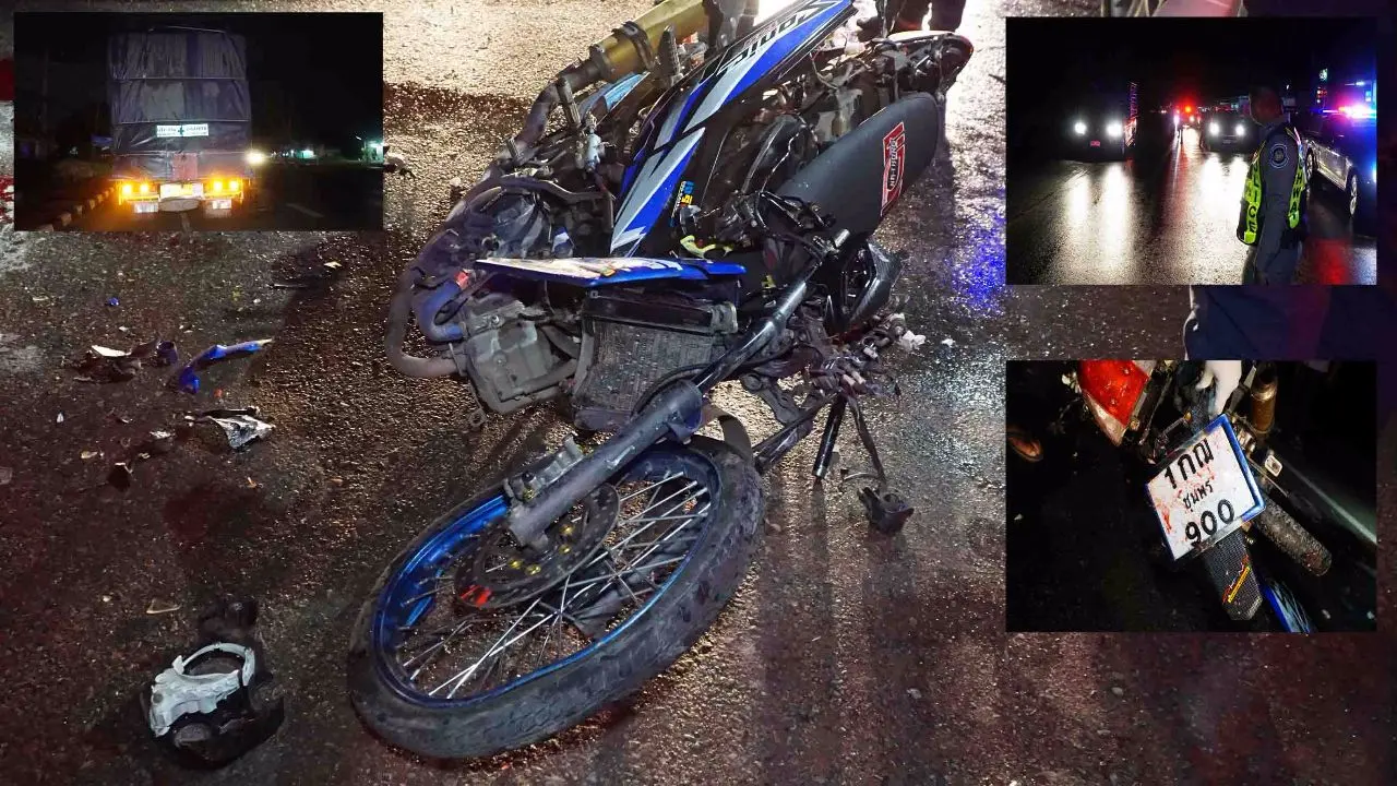 สุดสยอง หนุ่มขับมอเตอร์ไซค์พุ่งชนท้ายบรรทุกสิบล้อ สมองกระจายกลางทางหลวง