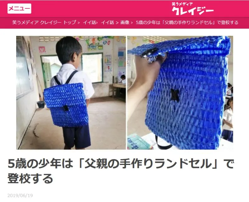 เรื่องราวนี้ถูกถ่ายทอดผ่าน เฟซบุ๊กรายหนึ่งจากประเทศกัมพูชา ชื่อ Sophous Suon ที่ได้เผยแพร่ภาพของหนุ่มน้อยที่สะพายกระเป๋าทำเองของคุณพ่อ ใส่หนังสือมาโรงเรียน หลังจากที่ทางบ้านไม่มีเงินมากพอที่จะซื้อกระเป๋าให้ลูก