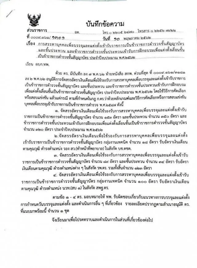 1.2 ชั้นประทวน 34 อัตรา สังกัดโรงพยาบาลตำรวจ [รพ.ตร.] หากมีรายละเอียดอื่น ๆ จะแจ้ง