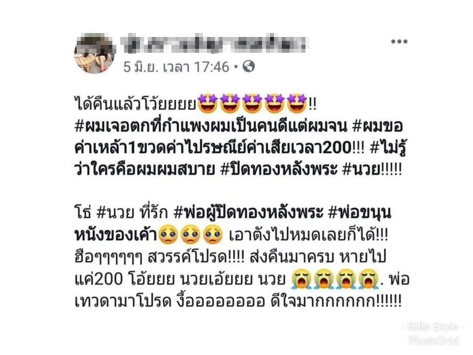 วันที่ 20 มิถุนายน 2562 พันตำรวจเอกศิริวัฒน์ ดีพอ รอง ผู้บังคับการกองบังคับการปราบปรามการกระทำความผิดเกี่ยวกับ อาชญากรรม ในฐานะโฆษก บก.ปอท. กล่าวถึงกรณี หญิงสาวโพสต์เฟสบุ๊กส่วนตัวว่าทำกระเป๋าสตางค์หาย แล้วมีคนเก็บได้และส่งมาให้ชื่อว่า นวย โดยขอดึงเงินไว้ 200 บาท เป็นค่าจัดส่งและค่าเหล้า จนสังคมตั้งข้อสงสัยว่าเป็นการกุเรื่องขึ้นหรือไม่ เพราะหญิงสาวคนดังกล่าวเป็นแม่ค้าออนไลน์