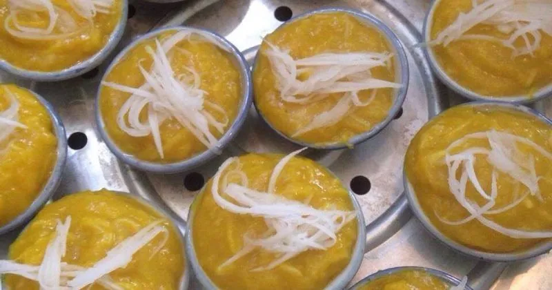 5 ให้เราทำการตักส่วนผสมใส่ถ้วยตะไลประมาณ 3/4 ของถ้วย จากนั้นนำไปนึ่งที่มีน้ำเดือดประมาณ 15-20 นาทีจนแป้งสุกและใส