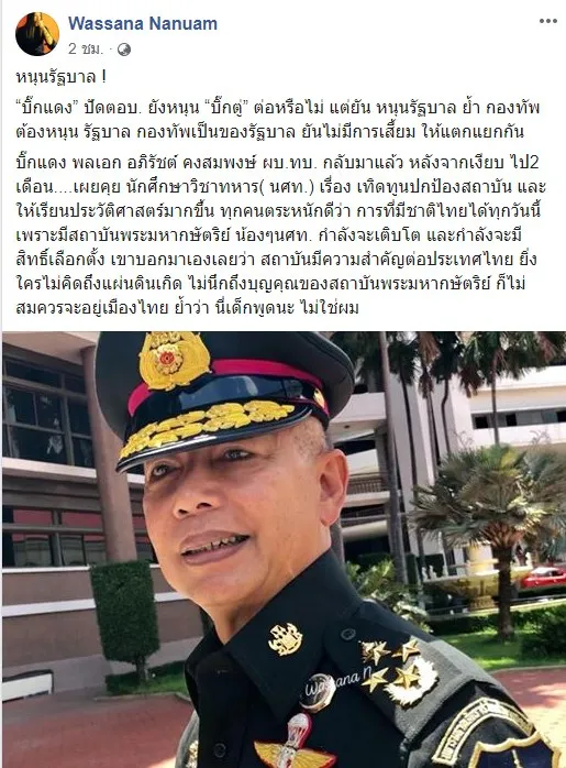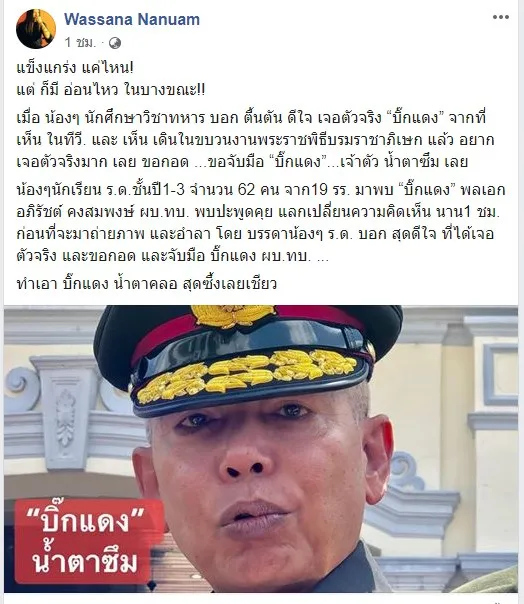 ผบ.ทบ. ยกคำพูด นศท. “ใครไม่นึกถึงบุญคุณของสถาบันพระมหากษัตริย์ก็ไม่สมควรจะอยู่เมืองไทย”