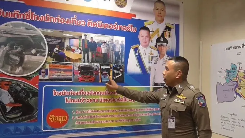 ต่อมา เจ้าหน้าที่ได้ตรวจสอบกับศูนย์รถแท็กซี่ท่าอากาศยานสุวรรณภูมิ จนทราบว่าผู้ขับขี่รถแท็กซี่คันดังกล่าวคือ นายเสวย พุฒิสารอายุ 57 ปี ขับขี่รถแท็กซี่สาธารณะ สีชมพู ทะเบียน ทษ 407 กรุงเทพมหานคร ต่อมาเจ้าหน้าที่ สามารถติดตามตัวนายเสวย ผู้ขับขี่รถแท็กซี่คันดังกล่าวได้ และจากการตรวจสอบมิเตอร์ภายในรถพบว่ามีการดัดแปลงมาตรวัดมิเตอร์ และติดตั้งวงจรไฟฟ้าสวิตช์ลับ บริเวณคันเกียร์ของรถแท็กซี่คันดังกล่าว เพื่อเพิ่มราคาค่าโดยสารโดยผิดกฎหมาย