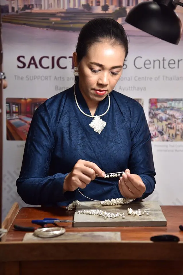 ครูนฤมล ทอนใจ ครูช่างศิลปหัตถกรรมของ SACICT ปี 2557 ประเภทเครื่องโลหะ