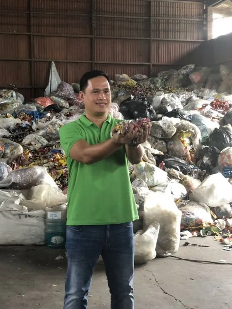 สิ่งที่บริษัทของเขาทำก็คือ นำเอาขยะพลาสติกที่มีมากมายกลับมาใช้ใหม่ ด้วยการแปรรูปมันให้กลายเป็นสิ่งที่ใช้งานได้
