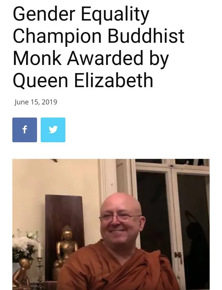 https://www.worldreligionnews.com/religion-news/gender-equality-champion-buddhist-monk-awarded-queen-elizabeth?fbclid=IwAR1budwJ8D5Hv72tL-m0SqVRmEDWTRzrkfGF8nembyIfnY9IMjoToegv0Ig