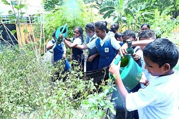 นักเรียนก็ช่วยรดน้ำ พรวนดิน เด็ดหญ้า ประหยัดเวลาเรียนพละไปเลย