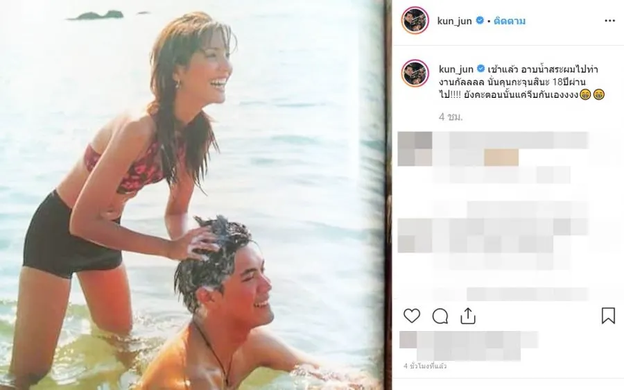 ล่าสุดหน่อย ได้เผยเเพร่ภาพสมัยอดีต ตอนที่จีบกับหนุ่มเคนใหม่ๆ ไปเที่ยวทะเลกันน่ารักมุ้งมิ้งสุดๆ โดยระบุเเคปชั่นว่า…เช้าแล้ว อาบน้ำสระผมไปทำงานกัลลลล นั่นคุนกะจุนสินะ 18ปีผ่านไป!!!! ยังคะตอนนั้นแค่จีบกันเองงงง ต้องบอกเลยว่าหุ่นเธอเฟิร์มมากจริงๆ ค่ะ