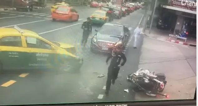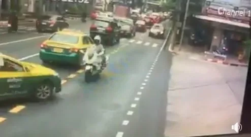 โดยทางเพจ เฮีย ได้โพสท์คลิป ซึ่งเป็นภาพจากกล้องวงจรปิด ที่จับภาพวินาทีเกิดอุบัติเหตุ มีความยาวประมาณเกือบ 1 นาที โดยเผยนาทีที่รถแท็กซี่กำลังจะเลี้ยวขวา ซึ่งจังหวะนั้น มีรถนำขบวนกำลังขับมาในทางตรง มีสัญญานไซเรนเปิดขอทาง ส่งผลให้เจ้าหน้าที่ โดนชนเข้าอย่างจัง จนทำให้กระเด็นตีลังกาม้วน ร่างร่วงกระแทกพื้น
