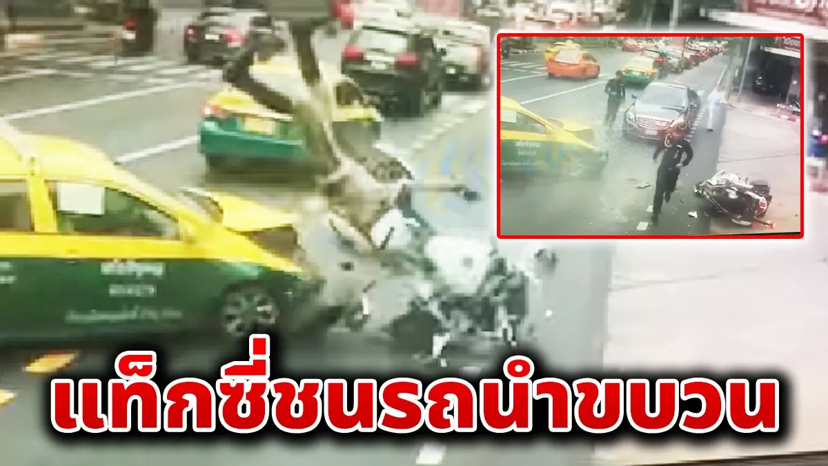 แท็กซี่เลี้ยวตัดหน้า ชนรถนำขบวนรองผู้บังคับบัญชาทหารสูงสุด พลขับร่างกระเด็นกระแทกพื้น
