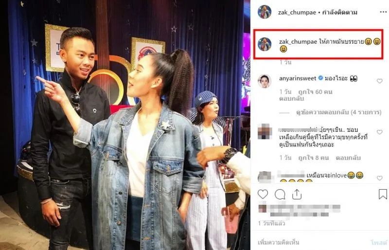 ล่าสุด หนุ่มแซ็ค นั้นก็ได้โพสต์รูปภาพคู่กับ สาวทับทิม ลงบนอินสตราเเกรมสุดหวาน โดย หนุ่มแซ็ค ได้ระบุข้อความว่า ให้ภาพมันบรรยาย งานนี้ชาวเน็ตจึงมองว่าเดินหน้าจีบ สาวทับทิม อยู่แน่ๆ