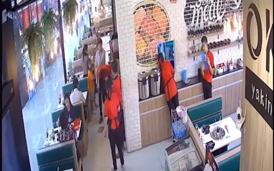สอบถามนางสาวสิริรัตน์ พนักงานเสริ์ฟว่า มีลูกค้ามาทานอาหารซึ่งเป็นร้านอาหารปิ้ง ย่างสไตล์ญี่ปุ่นแบบบุปเฟ่ มีหลายราคา มีผู้จองโต๊ะที่ร้านในนาม ทราบภายหลังว่าชื่อนายธีรพล ได้เข้ามารับประทานอาหาร 4 คน เป็นผู้ใหญ่2 เด็ก 2 ที่มีส่วนสูงเกินเกณฑ์ที่กำหนดไว้ และทานอาหารในราคา 359 บาท 3 คน ส่วนอีกคนจะทานในราคา 495 บาท ซึ่งเป็นเนื้อ แต่จะขอนั่งรวมกัน ซึ่งทีร้านบอกว่าไม่ได้เพราะอาหารที่สั่งคนละราคา จึงต้องแยกโต๊ะ จึงทำให้ชายดังกล่าวเกิดความไม่พอใจ ลุกขึ้นจากโต๊ะตบศรีษะนายทอง 2 ครั้ง จนหัวทิ่ม แล้วเดินมาตบหน้านางสาวสิริรัตน์ อีก 1 ที พร้อมประกาศว่า “พวกมึงทำอะไรกูไม่ได้”แล้วพาครอบครัวเดินหลบหนีไป