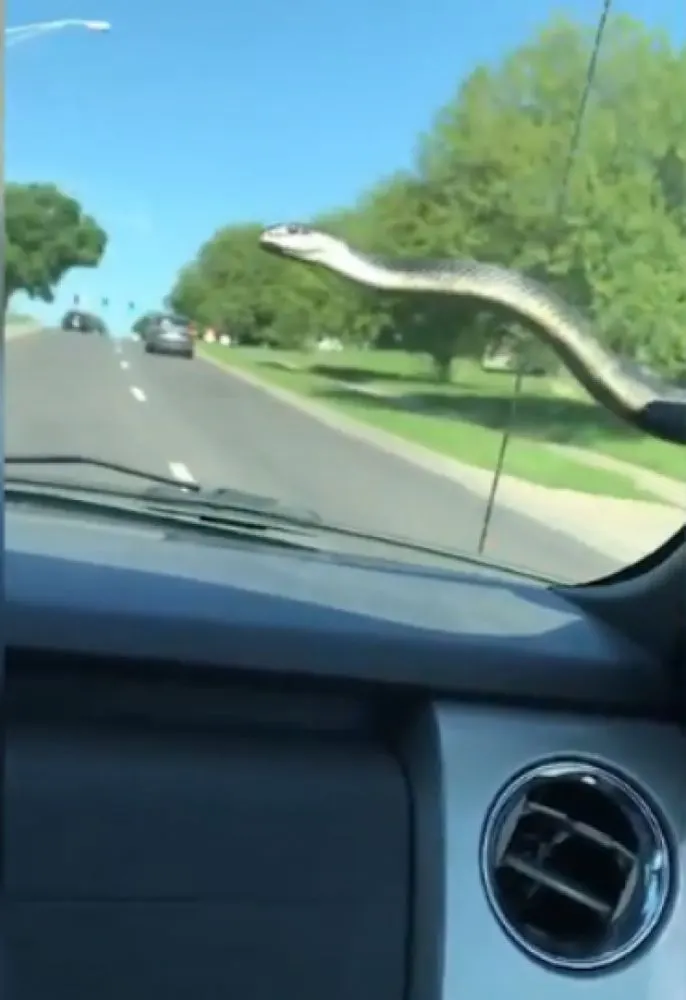 งูเลื้อยกระจกหน้ารถ คนขับเปิดที่ปัดน้ำฝนเขี่ยกระเด็น (คลิป)