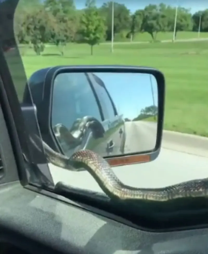 วันที่ 27 มิ.ย. แคนซัสซิตี้สตาร์ เผยแพร่คลิปวิดีโองูเลื้อยด้านนอกรถเก๋งขณะวิ่งบนท้องถนนในเมืองแคนซัส รัฐแคนซัส สหรัฐอเมริกา