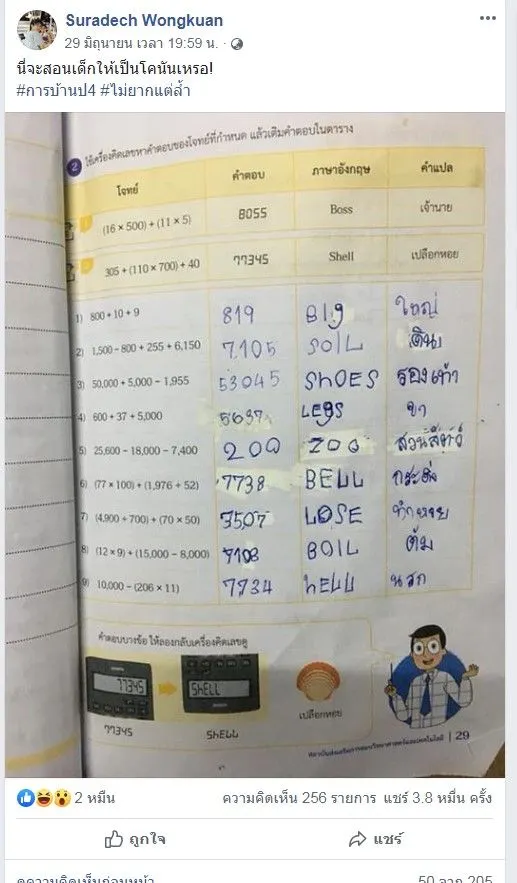 เมื่อวันที่ 29/6/62 ทางเฟสบุ้คคุณ Suradech Wongkuan ได้แชร๋ภาพการบ้านเด็ก ป4. ภาษาอังกฤษ
