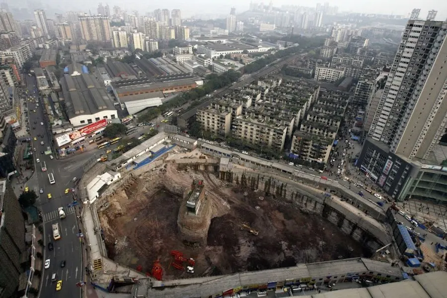 สื่อต่างประเทศรายงานว่า ในปี 2002 ที่เซินเจิ้น มณฑลกวางตุ้ง ได้มีเจ้าของบ้านหลังหนึ่งไม่ยอมย้ายออก ทั้งที่รอบข้างย้ายออกไปหมดแล้ว เหลือเพียงหลังนั้นหลังเดียว