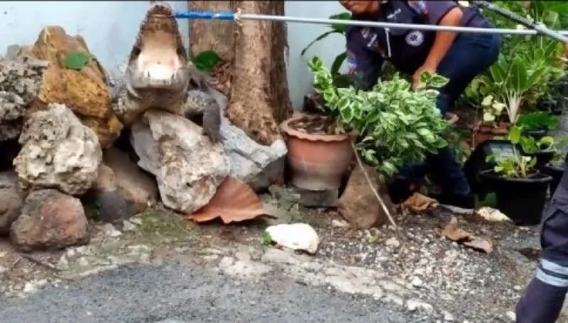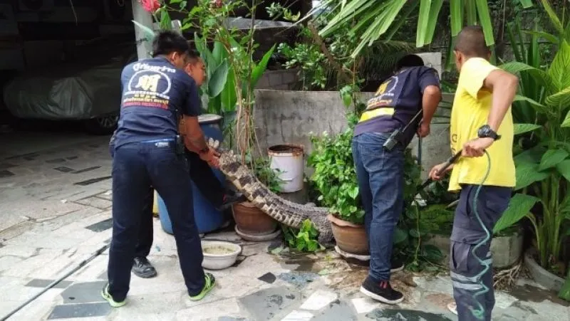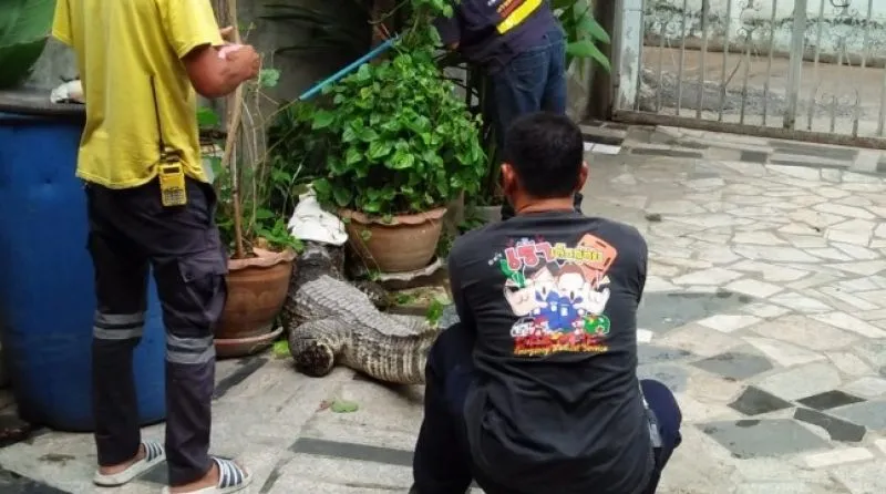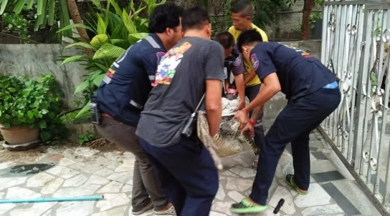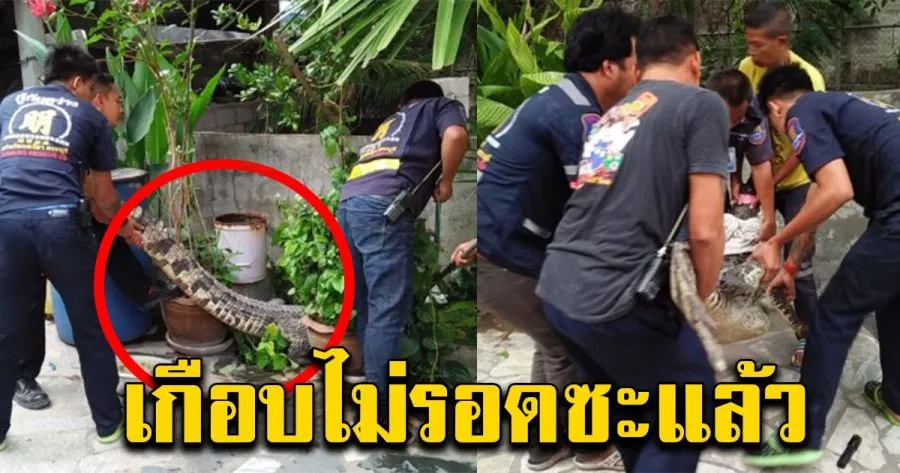 แต่เมื่อไปถึงที่เกิดเหตุ พบว่าเป็นจระเข้เลี้ยง ที่หลุดจากบ่อ ซึ่งมีขนาดใหญ่ และยาว ซ่อนตัวอยู่ข้างต้นไม้ที่มีกระถางล้อมลอบ หน้าบ้านเจ้าหน้าที่ลูกข่ายหน่วยกู้ภัยฯจึงได้ประสานไปยังศูนย์วิทยุ เพื่อขอกำลังเจ้าหน้าที่เสริม โดยเจ้าหน้าที่ได้เตรียมอุปกรณ์มากัน 5 คน พยายามช่วยกันจับ จึงสามารถจับได้