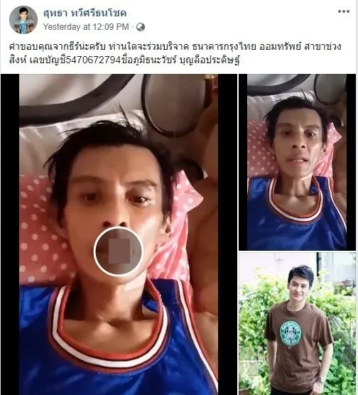 กลายเป็นที่พูดถึงและเผยแพร่เรื่องราวอย่างหนักในโลกออนไลน์ สำหรับกรณีของ “ธีร์-ภูมิธนะวัชร์ บุญลือประดิษฐ์” อดีตนักแสดงชายที่ป่วยหนักด้วยโรควัณโรคทับต่อมน้ำเหลือง จนชาวเน็ตและคนบันเทิงต่างพร้อมใจกันเป็นสะพานบุญ ให้กำลังใจอดีตนักแสดงรายนี้กันอย่างต่อเนื่อง
