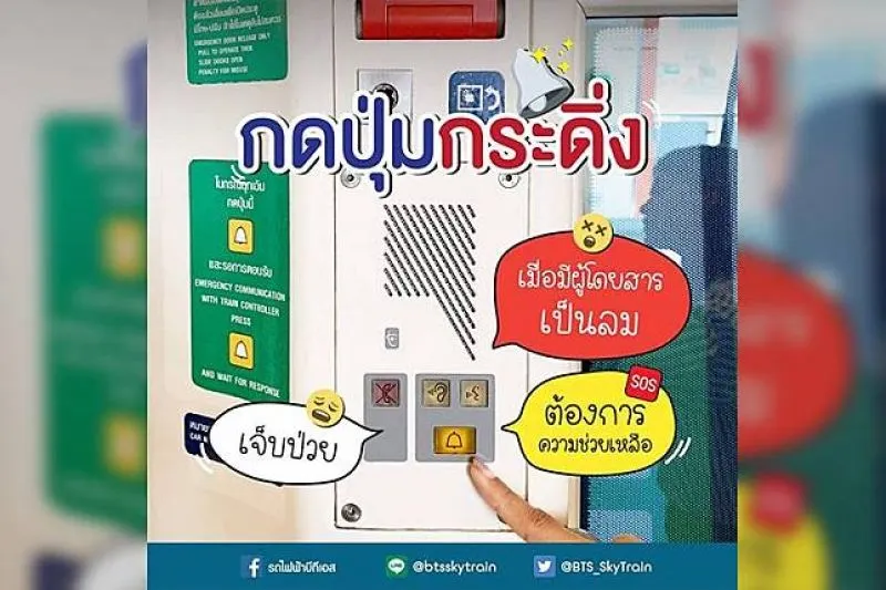"หากพบผู้เป็นลม หรือป่วย หรือต้องการความช่วยเหลือขณะที่อยู่ในขบวนรถ โปรดกดปุ่มกระดิ่ง แจ้งเจ้าหน้าที่ได้ทันที เจ้าหน้าที่จะประสานสถานีถัดไปให้เตรียมการช่วยเหลือทันที โดยไม่ต้องเสียเวลาจอดนาน เพื่อรีเซ็ตขบวนรถ สำหรับปุ่มกระดิ่ง อยู่บริเวณเดียวกับ PER ในทุกตู้โดยสาร" นายสุมิตร กล่าว