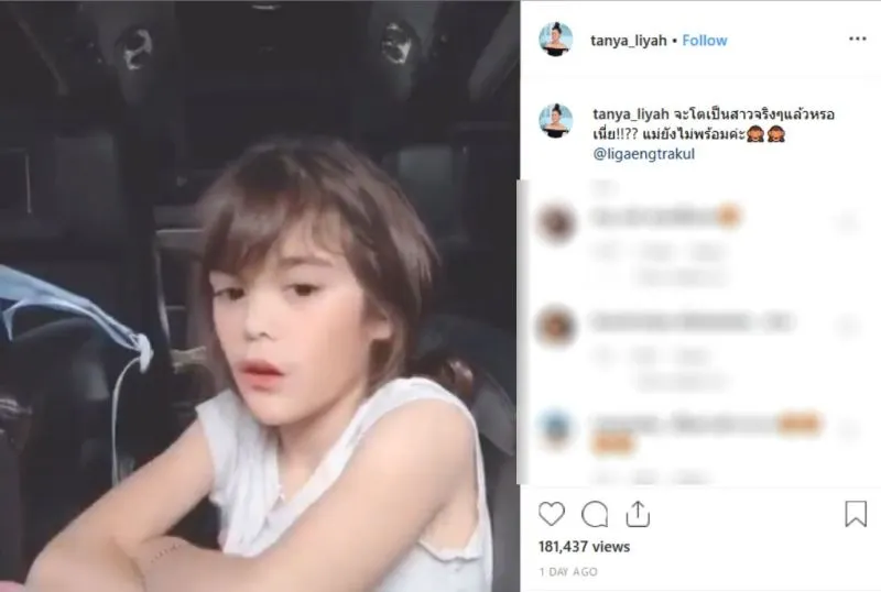 เรียกได้ว่ายิ่งโตยิ่งน่ารักขึ้นทุกวันเลยทีเดียว สำหรับ “น้องลีญา” ลูกสาวสุดห่วงแหนของ “ธัญญ่า ธัญญาเรศ” กับ “เป๊ก สัณชัย” ล่าสุดก็เติบใหญ่ไปอีกขั้น แถมความสวยเริ่มฉายแวว เพราะดูจากเค้าโครงตอนนี้..ถอดแบบสำเนาถูกต้องตามคุณพ่อเป๊กทีเดียว ซึ่งทางผู้ใช้อินสตาแกรมชื่อ tanya_liyah ได้โพสต์คลิปพร้อมระบุข้อความว่า จะโตเป็นสาวจริงๆแล้วหรอเนี่ย!!?? แม่ยังไม่พร้อมค่ะ