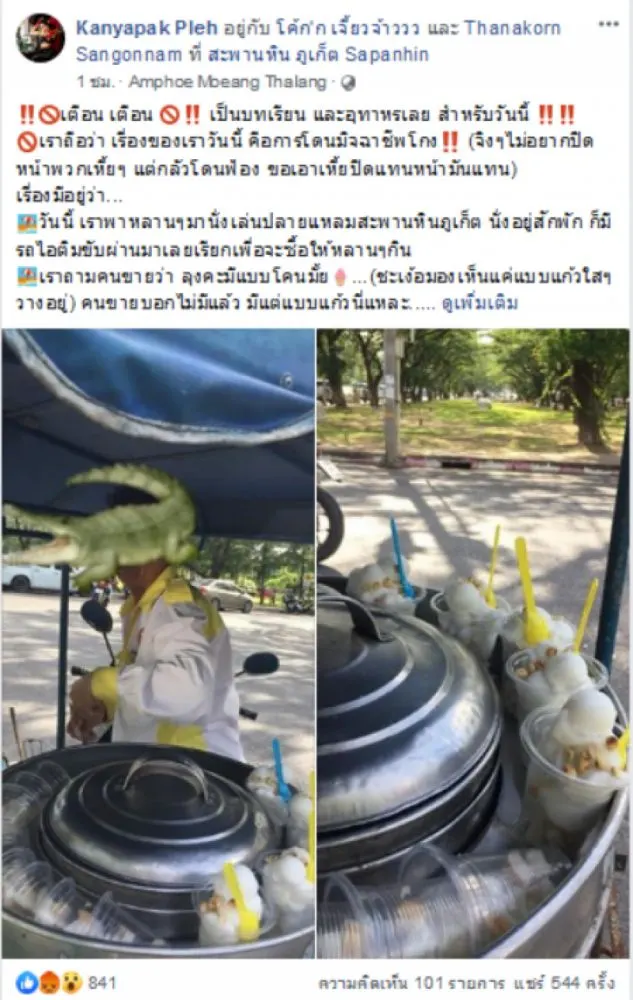 เมื่อวันที่ 30 มิถุนายน 2562 ผู้ใช้เฟซบุ๊ก Kanyapak Pleh ได้เผยแพร่เรื่องราว เมื่อไปซื้อไอศกรีมตักธรรมดาที่จ.ภูเก็ต แต่เมื่อรู้ราคามีช็อก โดยได้ระบุข้อความเอาไว้ว่า...