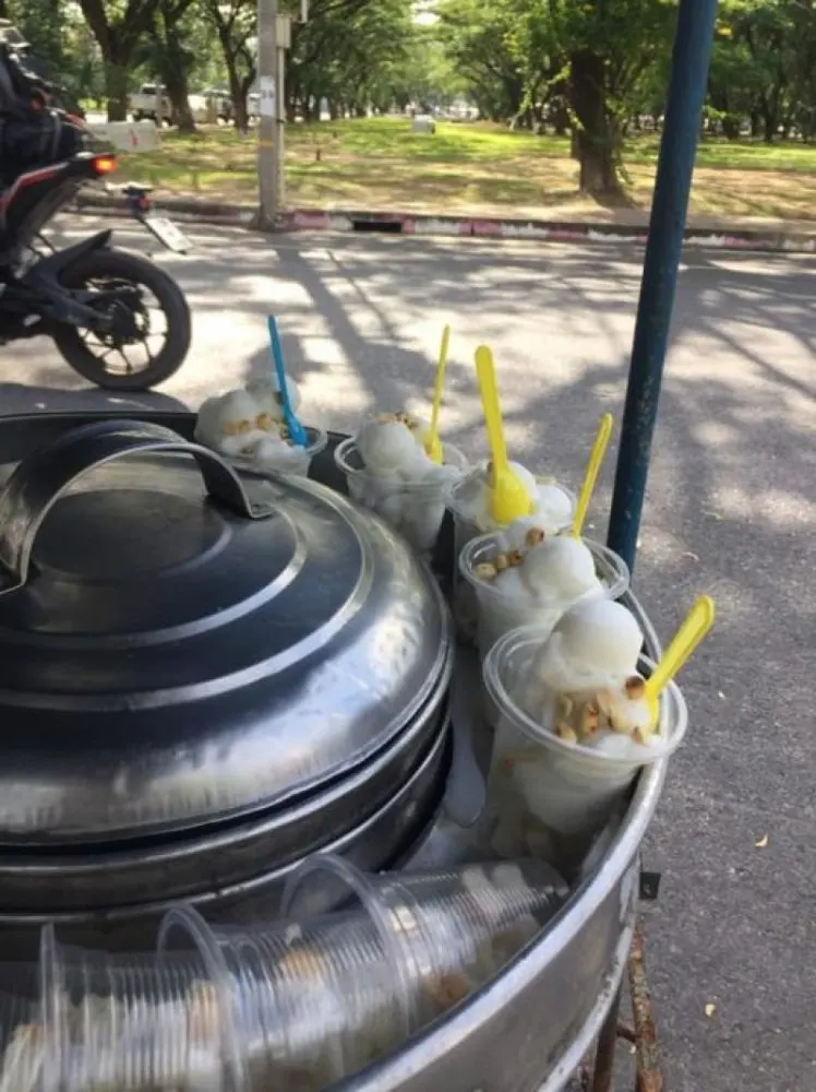 ระหว่างคนขายตักไอติมอยู่นั้น เราก็ถามขึ้นว่าแก้วเท่าไหร่คะลุง พร้อมล้วงตังค์ในกระเป๋า แก้วละ 40 บาท!! อุทานออกมาเลยจ้า…เห้ยลุง ทำไมแพงจัง แก้วตั้ง 40 บาท มันไม่ใช่แล้ว ลุงแกบอกว่า นี่กว่าจะขับเข้ามาในสะพานหินได้ ต้องแอบเทศกิจเข้ามานะ!! ราคานี้แหละ