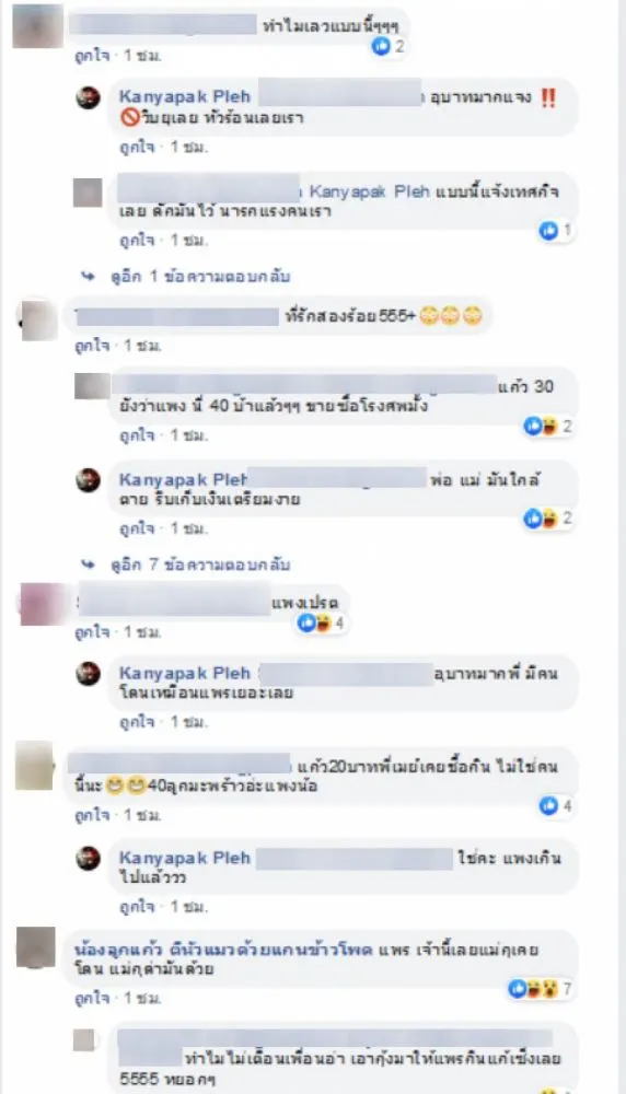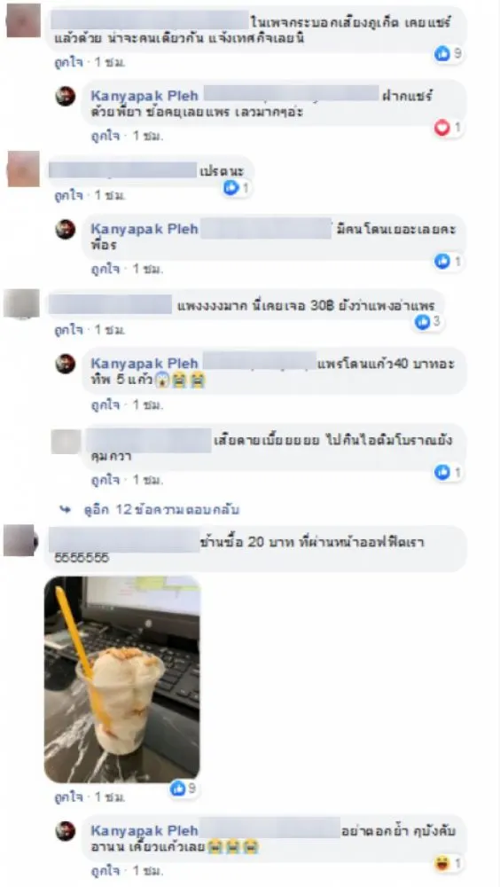 แล้วบอกอีกว่า คนอื่นขายแก้ว 60 บาทน่ะ โวยวายคะ เสียงดังอยู่พักนึง มีคนจะมาซื้อ เราเลยบอกไปว่าแก้วละ 40 นะจะซื้อหรอ คนอื่นๆที่จะซื้อพูดขึ้นมาว่า โหหหหห..ราคาสูงจัง #แถมมาว่ากุอี๊ก ว่าไม่ถามราคามันก่อนซื้อเอง หัวร้อนอีกรอบสิ (สังคมแม่งเดี๋ยวนี้เอาเปรียบกันขนาดนี้แล้วหรอ)