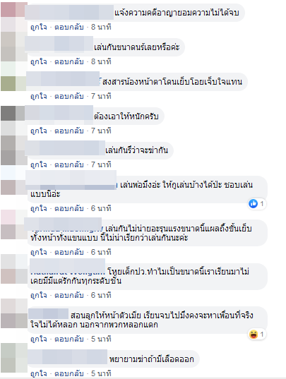 ปวดใจกับคำว่า”เด็กเล่นกัน”คือ ลูกคุณเป็นผู้ชายแล้วลูกคุณก็เป็นฝ่ายใช้เท้า(ตีน)เตะก้น(ตูด)หลานสาวผมก่อน คุณอาจจะทำมาค้าขายมีเงินมีฐานะในตัวเมืองประจวบฯ แต่นั่นไม่ได้หมายถึงว่าคุณมีน้ำใจมีความรับผิดชอบ และคุณครูที่ ปว.ก็ไม่ควรตำหนิหลานสาวผมในกรณีการไปแจ้งความเพราะว่าหลานสาวผมบาดเจ็บขนาดนี้