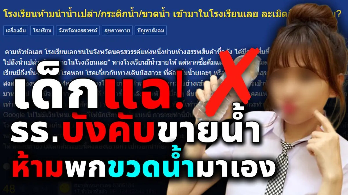 แฉ! รร. ห้ามนำน้ำ กระติกน้ำ ขวดน้ำมาเอง ต้องซื้อดื่มใน รร.และต้องดื่มในช่วงพักเท่านั้น