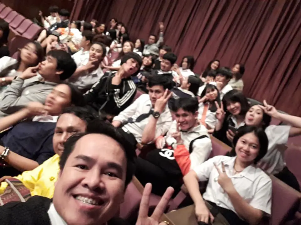 “ครูโอม” อาจารย์สุชาญวุฒิ กิ่งแก้ว หัวหน้าสาขาศิลปะการแสดง คณะนิเทศศาสตร์ มหาวิทยาลัยศรีปทุม พร้อมด้วยคณาจารย์ นำทีมนักศึกษาสาขาศิลปะการแสดง คณะนิเทศศาสตร์ ทุกชั้นปี กว่า 50 ชีวิต เรียนกับตัวจริง ประสบการณ์จริง ในการเข้ารับชมการแสดงละครเวที แนวโศกนาฏกรรม เรื่อง "บัลลังก์เมฆ THE MUSICAL 2019" ผลงานล่าสุดของบริษัท ซีเนริโอ อำนวยการสร้างและกำกับการแสดงโดย คุณบอย ถกลเกียรติ วีรวรรณ เพื่อให้นักศึกษาได้เปิดประสบการณ์ การเรียนรู้นอกห้องเรียน พร้อมเรียนรู้ศิลปะการแสดงจากนักแสดงมืออาชีพ ซึ่งนักศึกษาตื่นเต้นที่ได้เห็นงานการแสดงละครเพลงระดับมืออาชีพ