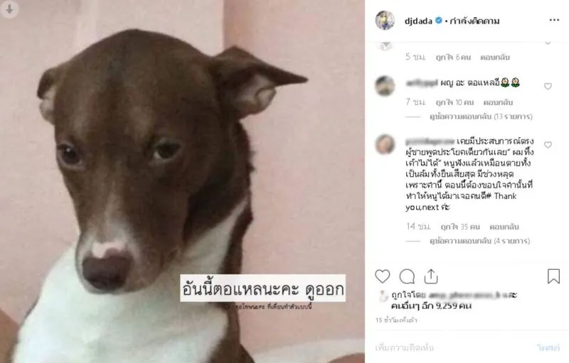 ล่าสุด อินสตาแกรมชื่อ djdada ซึ้งเป็นเพื่อนซี้ของ ต้นหอม ก็ได้ออกมาโพสต์ภาพ หมามองแรงและข้อความว่า อันนี้ตอแห นะคะ ดูออก พร้อมกับแคปชั่นว่า วันนี้ข่าวบันเทิงเยอะ สายตาจะเป็นแบบนี้ค่ะ5555 และงานนี้ต้นหอมก็เข้ามากดไลค์รัวๆเลยจ้า