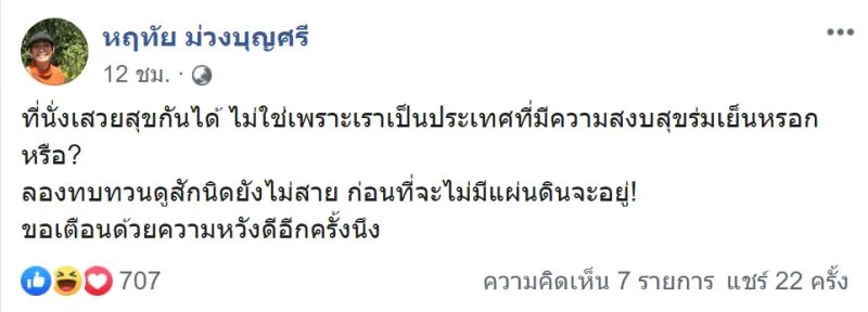 ไม่ใช่เพราะเราเป็นประเทศ ที่มีความสุข สงบร่มเย็นหรอกหรือ ?