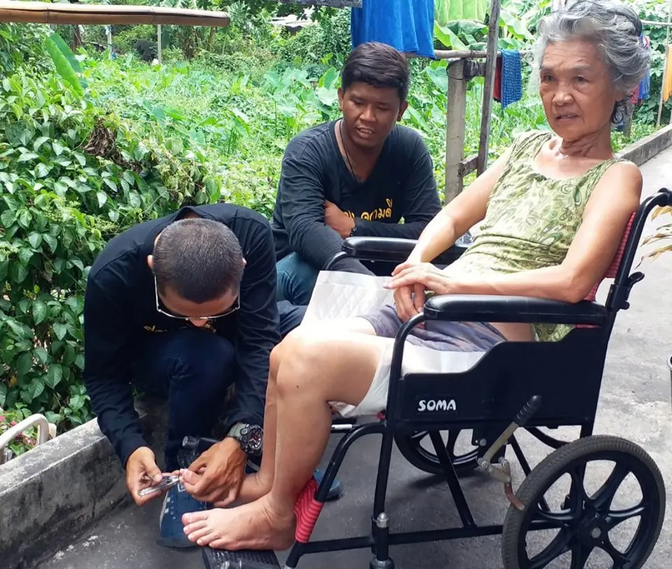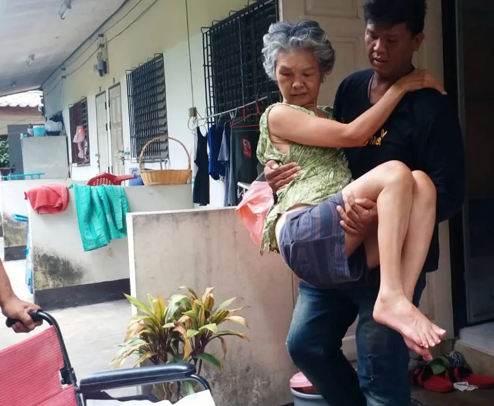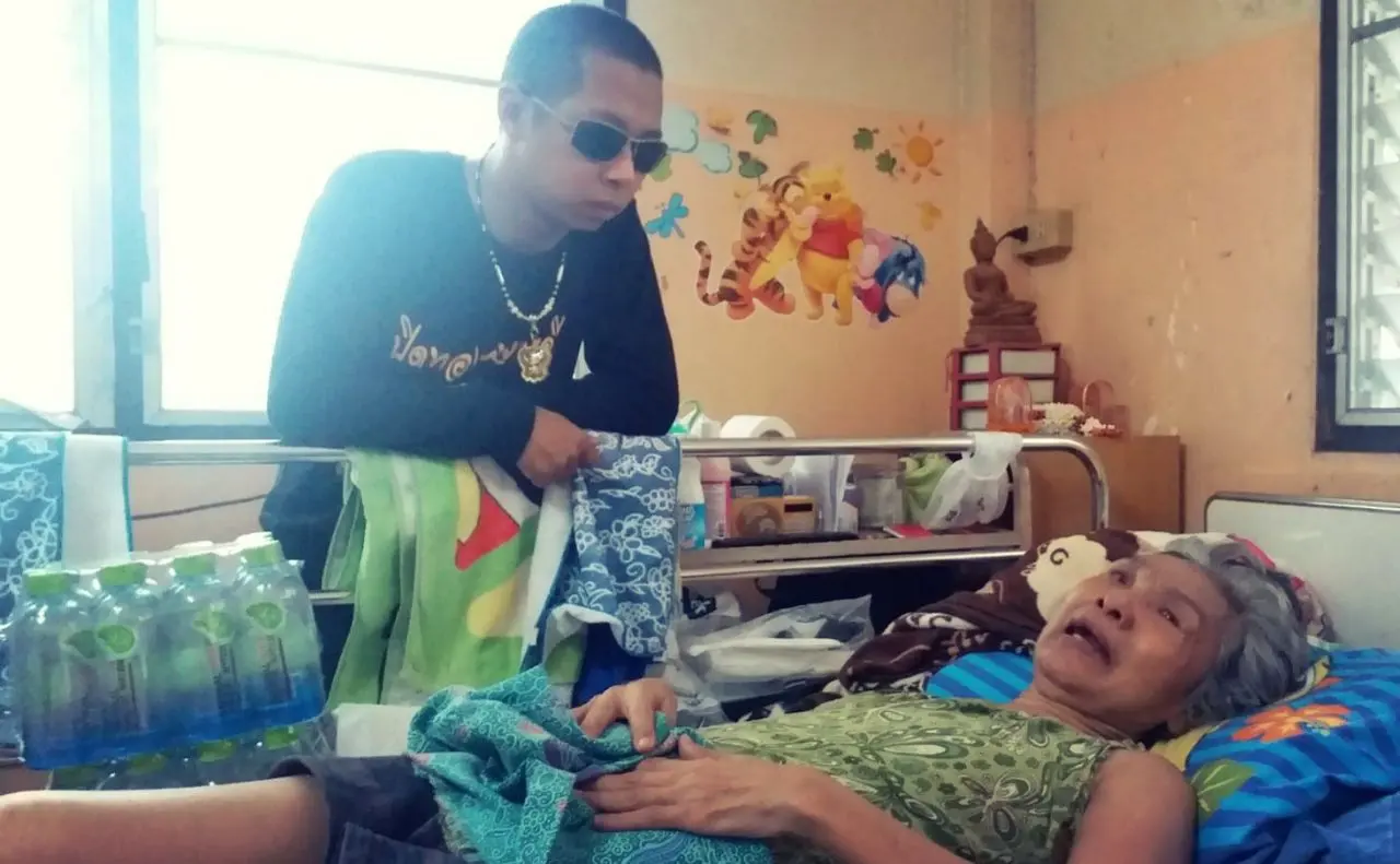 ภาพที่ไปเห็นคุณยายต้องนอนอยู่บนเตียงคนป่วย อยู่ในห้องเช่าเล็กๆแห่งนี้ มานานหลายปี นานแล้วที่ไม่เคยออกมาเห็นโลกภายนอกว่าเป็นยังไง ตอนนี้มีเพื่อนข้างห้องช่วยดูแล ญาติที่เหลืออยู่ข้างกายก็มีเพียงหลานชายคนเดียว หลานชายต้องออกไปทำงานรับจ้างหาเงินมาดูแล คุณยายอันเป็นที่รัก ถ้าบ้านใครมีคนป่วยเป็นโรค อัมพฤษ – อัมพาต หรือใครเคยเป็น คุณจะเข้าใจเลยว่า โรคนี้มันทรมาณขนาดไหน ต้องนอนอยู่กับที่ ไม่สามารถเห็นแสงเดือน แสงตะวัน ไม่สามารถออกมาเห็นโรคภายนอกได้เลย ถ้าคุณไม่มีรถเข็นคนป่วย