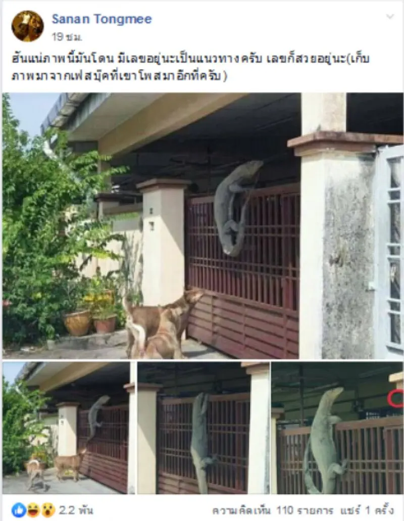 เมื่อวันที่ 6 กรกฎาคม 2562 ที่ผ่านมา ผู้ใช้เฟสบุ๊คที่ใช้ชื่อว่า Sanan Tongmee ได้โพสต์ภาพตัวเงินตัวเงินตัมทองปีนรั้วบ้าน โดยได้ระบุข้อความว่า...