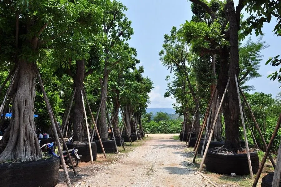 3. ในการจัดสวน นิยมใช้ไม้ที่มีขนาด 5-6 นิ้ว ในการนำไปส่ง ต้องใช้เครนยก ราคาจะเป็นเงินขนาดเส้นผ่าศูนย์กลางนิ้วละ 100 บาท ถ้ามีเส้นผ่าศูนย์กลาง 5 นิ้ว ก็เป็นเงินต้นละ 500 บาท ซึ่งเป็นราคาในไร่ ส่วนไม้ที่มีเส้นผ่าศูนย์กลาง 8-10 นิ้ว จะมีราคานิ้วละ 200 บาท ดังนั้นต้นที่มีเส้นผ่าศูนย์กลาง 10 นิ้ว ก็จะมีราคาต้นละ 2,000 บาทนั่นเอง
