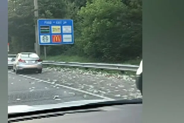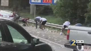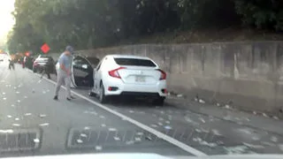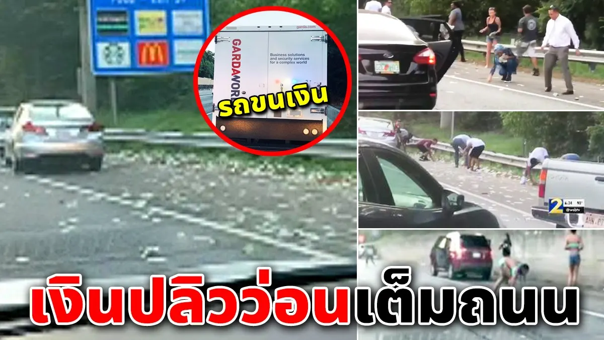 รถขนเงินประตูเสีย ทำเงินดอลล่าร์ปลิวว่อนถนน คนแห่เก็บเงินชุลมุน