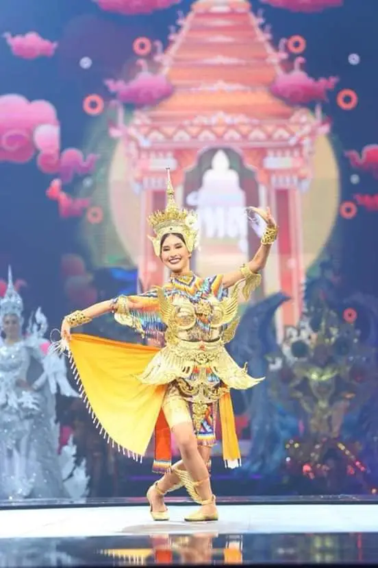 "วิหคแดนใต้..มโนราห์สกุนี "ผู้ออกแบบได้รับแรงบันดาลใจมาจากประวัติความเป็นมาของจังหวัดพัทลุง ถ้าเอ่ยถึง "มโนราห์ เราจะรู้เลย..และได้นำเอาความหมายของ มโนราห์ มาตีโจทย์ เป็น :วิหคแดนใต้ ที่เปี่ยมไปด้วยคุณค่าทางศิลปวัฒนธรรม ความอ่อนช้อย และความเป็นอัตลักษณ์ที่สืบทอดกันมาจากบรรพบุรุษ ส่งผ่านเป็นการแสดงที่โด่งดัง และเป็นประเพณีของ "มโนราห์พัทลุง "และการออกแบบจะให้คล้ายคลึงดั่งนก กินรีที่มีความงดงามในแบบฉบับวรรณคดีไทยพื้นบ้านของชาวพัทลุง และนำเสนอผลงานด้วยสีทองอร่าม และแทรกสีสันตามแบบฉบับของมโนราห์ และส่วนที่สำคัญที่สุด คือ "เทริด" ใช้แบบดั้งเดิมตามโบราณของการทำเทริด ของมโนราห์พัทลุง เพื่อความศักดิ์สิทธิ์และเคารพ และยังสง่างาม