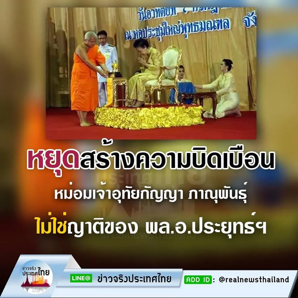 👉🏻 จากกรณีมีการกล่าวอ้างว่า หม่อมเจ้าอุทัยกัญญา ภาณุพันธุ์ เป็นมารดา ของ พล.อ.ประยุทธ์ จันทร์โอชา นั้น ไม่เป็นความจริง