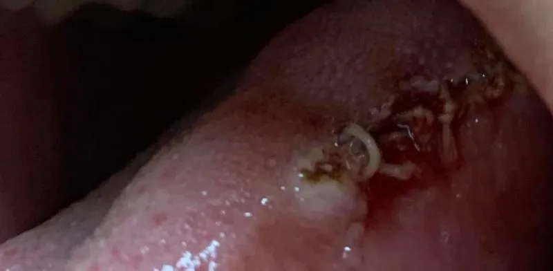 ขนลุก!! สาวโพสต์เตือน!! สายกินผักก็ต้องระวัง หลังพบตัวอ่อนของพยาธิตืดหมู ฝังตัวในลิ้น ต้องผ่าตัดออก